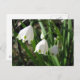 Das Design zeigt ein Foto der Frühlingsblumen, Schneeblocken, die aus Glühbirnen wachsen.