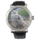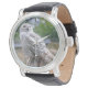 Schneeeule Männer's Vintage schwarze Leder Strap Watch..