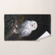 Tierporträtfotografie der majestätischen, schneebedeckten Eule, die auf einem Zweig stehend ist.