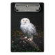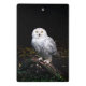 Tierporträtfotografie der majestätischen, schneebedeckten Eule, die auf einem Zweig stehend ist.