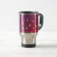 Schneeflocken in Weiß auf lila magentafarbenem Hintergrund.