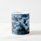 Schneefall im Wald. Schneeflocken in der Luft. Schneebedeckter Weihnachtsbaum. Blau und Grün, Winterstimmung. Frohe Weihnachten und viel Glück für Sie und Ihr neues Jahr! Funny coffee Tasse.