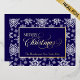 Elegantes Skript Snowflake Muster Foil Holiday Card. Ein Wirbles Skript und Text auf einem Schneeflockenmuster. Modernes, klassisches und traditionelles Winterwunderland mit weißem fallendem Schnee auf dunkelblauem Hintergrund. Die Folienoptionen sind Gold, Silber und Rose Gold. Passen Sie den Text an, der rückseitige Text ist optional, oder löschen Sie ihn.