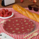 Schneeflocke-Entwurfs-Gold auf Rot Pappteller