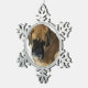 Diese Schneeflockeverzierung, die mit einem wertvollen Foto eines Schnee-geküssten englischen Mastiff geschmückt wird, ist sicher, jeden möglichen Hundliebhaber glücklich zu machen! Diese Hündchenverzierung würde auf einem Weihnachtsbaum dem Büro des Tierarztes groß betrachten.