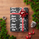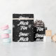 "Snow Much Fun" Text mit weißen Schneeflocken auf schwarz