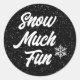 Weiße Schneeflocken mit "Schnee viel Spaß" Text auf schwarz. Die Hintergrundfarbe kann geändert werden.