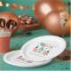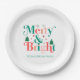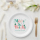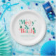 Fröhlicher und heller moderner Schriftart, Pinienbäume und Schneeflocken auf weißem Hintergrund.