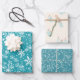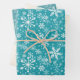 Schneeflocken, Blätter, Knospen, Bäume, aquamarin, Geschenkpapier Set