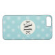 Dress up and protect your iPhone with this personalisierte, trendige und stilvolle Snowflake pattern with a round circle design element that is custom mit Monogramm with your first, Middle and last name initials. Helles Aqua/türkisfarbenes Blau und Weiß.