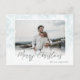 Moderne, schlichte und elegante Weihnachten Ein Foto Weihnachts Postkarte mit einem Schneeflocken Overlay. Der Hintergrund aus eisblauem Marmor mit weißen Schneeflocken und dem gleichen auf der Rückseite. Personalisieren Sie diese Weihnachtskarte einfach mit Ihrem eigenen Foto und dem Text.