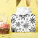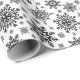 Schneeflocken Musterverpackungspapier. Schwarze Schneeflocken auf weißem Papier. Ein nahtloses Muster von Schneeflocken in verschiedenen Designs und Formen macht dieses zeitlose, klassische und traditionelle Verpackungspapier. Ein elegantes Winterdesign, minimalistisch und einfach. Schneeflocken in einer Illustration für die Feriensaison, Feste und Weihnachten. Dieses Verpackungspapier passt zu den meisten Gelegenheiten in der Wintersaison, Weihnachten und Geburtstag Jahr für Jahr. Erhältlich in verschiedenen Größen und Farbkombinationen.