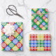 Rot Grün Gelb und Blau. Set von drei koordinierenden Primärfarben Snowflake Wrapping Papers.