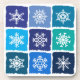 Schneeflocken in weißem Grundierrahmen auf blauem Hintergrund