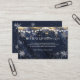 Hübsche Holiday Decorating Company Visitenkarte mit laksigen Schneeflocken, Sternen und Saitenleuchten auf marineblau Hintergrund.