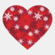 Schneeflocken im roten Hintergrund Herz-Aufkleber