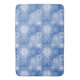 Extravagantes, weißes Schneeflockenmuster auf schimmerndem blauen Hintergrund.