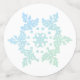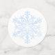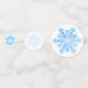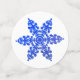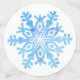 6 Schneeflocken in Blautönen vor weißem Hintergrund