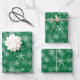 Das Set der Urlaubspapiere wird in einem festlichen Schneeflocken-Printdesign gezeigt. Farbe Grün Matte angezeigt Anpassen Sie dieses Objekt oder kaufen Sie, wie es ist.