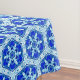 Tablecloth in einem geometrischen, Wabenquiltmuster von Schneeflocken in tiefblauem und weißem Kobalt mit türkisfarbenem Akzent