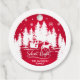 Weihnachtsgeschenk-Tag mit weißen Kiefern-Silhouetten mit Schneeflocken und einem Pferd gezeichnet Schlitten auf rotem Hintergrund, mit dem Wortlaut Stille Nacht in handgeschriebener Schrift. Die Rückseite des Geschenktafels lässt sich leicht anpassen, indem Sie Ihre eigene Nachricht und Ihren eigenen Familiennamen hinzufügen.