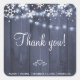 Editierbarer Text begünstigen Aufkleber mit rustikalen weißen Schneeflocken, drei kleinen Herzen und binkelfarbenen Hängeleuchten mit einem weißen bearbeitbaren Dankeschön-Script auf dunkelblau grauem Holzhintergrund. Ideal für Ihren Winter elegante rustikale saisonale Wunder thematische Hochzeit, Babydusche oder andere Anlässe.