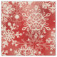 Schneeflocken Muster. Nahtloses Muster mit flauschigen weißen Schneeflocken auf rotem Hintergrund.