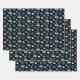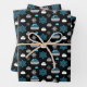 Wrapping Paper Boards mit einem Schneeflocken und Curling Rock Muster in blau, weiß und grau auf schwarzem Hintergrund. Ideal für Curler und Curling-Fans.