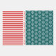 Schneeflocken, Weihnachtsbäume, rote Streifen aqua Geschenkpapier Set