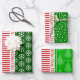 Schneeflocken, Weihnachtsbäume, rote Streifen grün Geschenkpapier Set