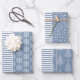 Schneeflocken, Weihnachtsbäume und Streifen staubb Geschenkpapier Set