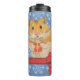 Niedliches Weihnachtshamster-Design, perfekt für die Urlaubssaison. Dieser niedliche Hamster ist hinter einem roten Band und Bogen stehend, und es gibt ein Schneeflockenmuster. Der Hintergrund ist blau.