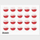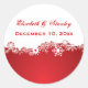 Schneeflocken, rot, Save the Date Aufkleber, mit einem weißen Rand von Schneeflocken auf leuchtend rotem Hintergrund. Eine perfekte Wahl für Winterhochzeiten im Dezember.