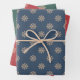 Ein Set Papier mit Schneeflockenmuster in drei klassischen Weihnachtsfarben (blau, grün, rot) ist eine wunderbare Dekoration für Ihre Geschenke.