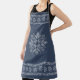 Winterurlaub Schneeflocke, Vintager Stickereischnee, weißes Schneeflockenmuster im blauen Hintergrund