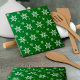Niedliches, lustiges und bezauberndes Muster mit weißen Schneeflocken auf grünem Hintergrund. Modernes und trendiges Geschenk, perfekt für den Schneefreund in Ihrem Leben.