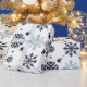 Hübsche Blau-Farbtöne mit einem minimalistischen, weiße Schneeflocken-Packpapier, geeignet für Weihnachtsgeschenke. Siehe auch passende Tags.