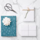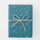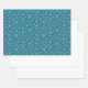 Umschlagpapier mit Schneeflockenprint auf blauem Hintergrund.