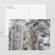 Schöner Schneeleopard stehend im fallenden Schnee.