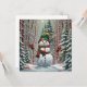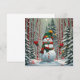 Schneemann im Wald, in Rot- und Grüntönen, perfekt für die Feiertage zum Jahresende