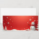 Grußkarte mit 3D Schneemann, Knete-Effekt. Isoliert auf einer roten Weihnachtsdekoration und weißen Flocken