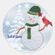 Schneemann mit Kardinal Classic Round Sticker zum Siegel all Ihrer Urlaubsgeschenke und -umschläge , Sie werden dies auf einem Post bekommen - es ist auch zu beachten!