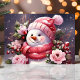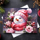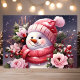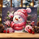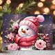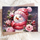 Mit dieser bezaubernden Urlaubskarte mit einem Schneemann in rosa Schal, umgeben von rosa Rosen und Winterbeeren, versprühen Sie feierlichen Beifall. Ideal, um fröhliche Weihnachtswünsche zu versenden, fügt diese Karte Ihren Feiertagsgruß eine skurrile Touch hinzu.