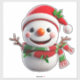 Ein lächelnder Schneemann mit festlicher roter Weihnachtsmannmütze und gestreiften Schals, der Urlaubsjubiläum und eine fröhliche Winteratmosphäre weckt. Ideal für Weihnachten und saisonale Urlaubsthemen.