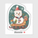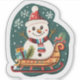 Ein fröhlicher Schneemann mit einem roten Hut und Schal reitet auf einem lebhaften Schlitten mit Geschenken. Schneeflocken fallen sanft herum, während der festliche Geist die Luft füllt und die Wärme und Freude der Ferienzeit verkörpert. Ideal für Weihnachtsfeiern.