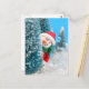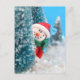 Schneemann versteckt oder pinkelt hinter einem Bau Postkarte