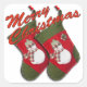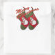 Dieses Weihnachtsaufkleber-Design zeigt ein Duplikat eines roten und grünen Strumpfs mit einem bezaubernden Schneemann, der mit einem karierten Schal und einem Set mit Hut auf weißem Hintergrund gekleidet ist. Sie können den schwarz umrissenen Frohen Weihnachtstext entfernen, dann klicken Sie auf Anpassen, um den Text in einem Schriftart Stil, Farbe und Größe, die Sie bevorzugen hinzuzufügen. Klicken Sie unter Bearbeiten und Hintergrund auf Anpassen!, um eine andere Hintergrundfarbe als weiß auszuwählen.