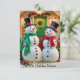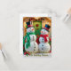 Genießen Sie ein zauberhaftes Winterwunderland mit dieser skurrilen Weihnachtskarte mit zwei bezaubernden Schneemännern! Der größere Schneemann, in einem klassischen schwarzen Top-Hut gekleidet, strahlt mit seinem glühenden, transparenten Körper Wärme aus. Der verspielte kleinere Schneemann macht einen zauberhaften roten Schal, der eine zusätzliche Touch Beifall spendet. Umgeben von zarten, grünen und weißen Ornamenten, inspiriert von Weihnachtsbäumen und Schneeflocken, ist diese reizvolle Szene Set vor dem Hintergrund einer atemberaubenden Haustür. Ideal, um die Urlaubsfreuden zu verbreiten!