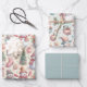 Niedliches Verpackungspapier in zwei verschiedenen Schneemodellen mit einem schlichten Blatt in koordinierendem Blau, dass Sie selbst zu Anzug wechseln können.