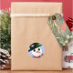 Ein niedlicher Schneemann mit einem schwarzen Hut mit einem großen Grinsen auf dem Gesicht. Niedlicher Ferienaufkleber.